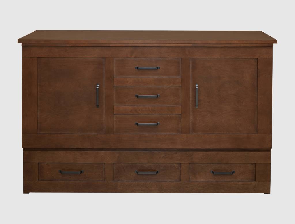 The Aztec is a free-standing CabinetBed that transforms into a bed under 30 seconds no wall mounting or permanent installation required. Its stylized grooved panels clean lines, and side opening panels give it a modern door look while keeping operation effortless for daily use.