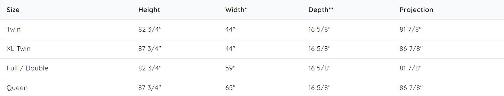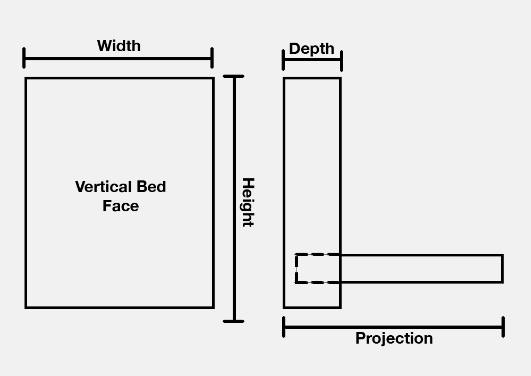 Measuring is one of the most important steps to take once you’ve decided to shop for Murphy beds. Dimensions, including the height, width, depth (when closed) and projection from the wall (when open), will allow you to easily see how your Murphy bed and side cabinets, if you choose them, will fit on a wall in your space. The Murphy bed dimensions you see below represent the size of the constructed bed, not its deconstructed measurements when delivered.