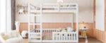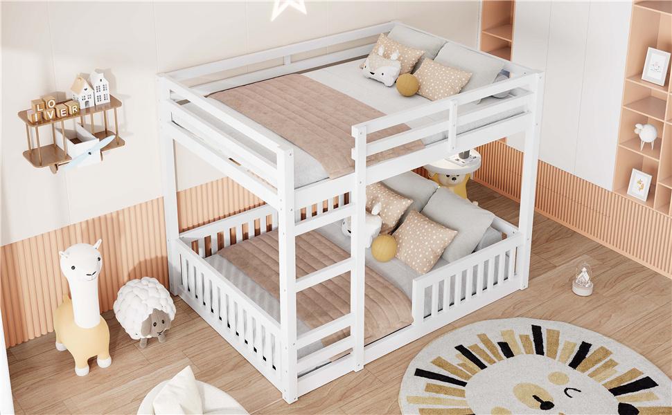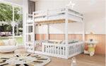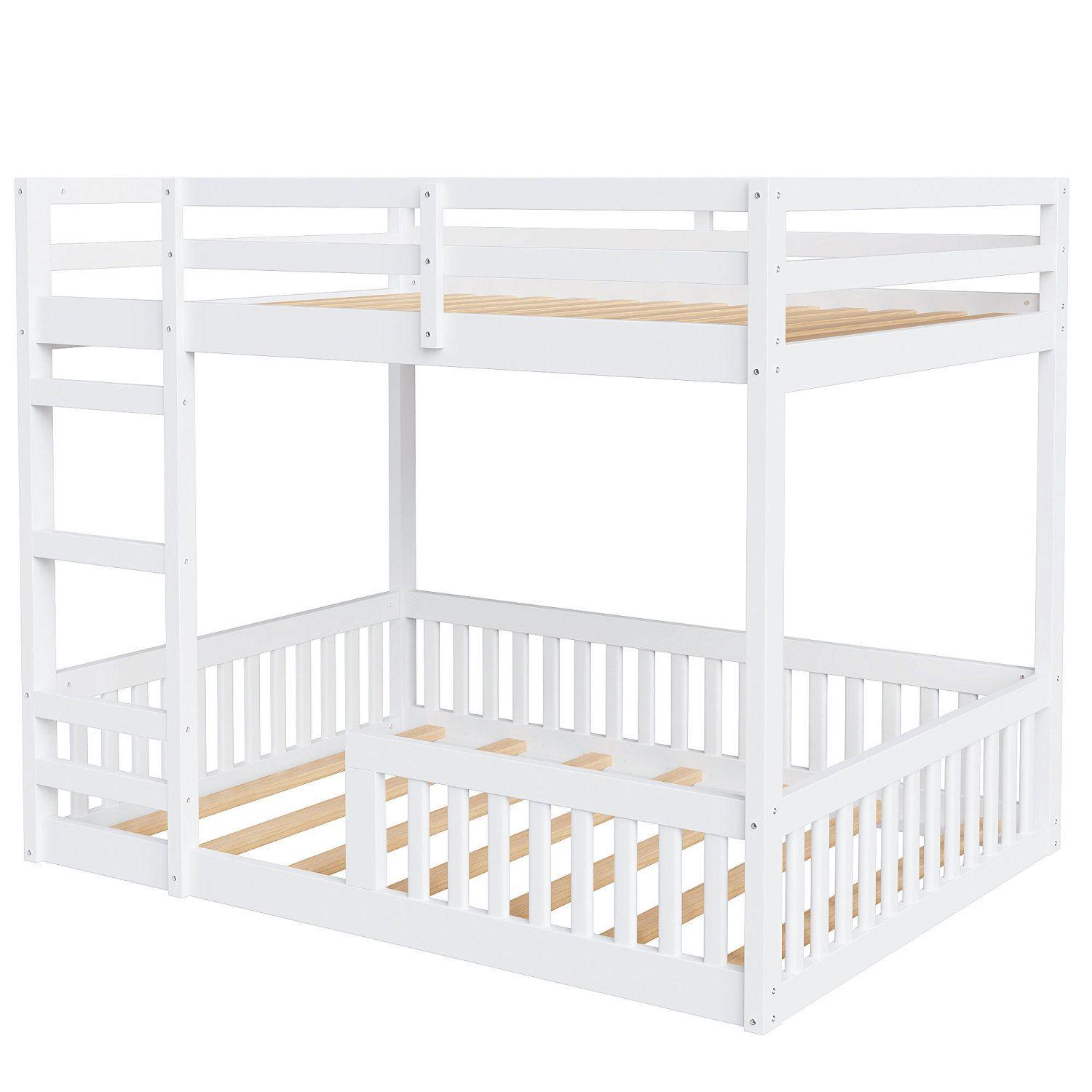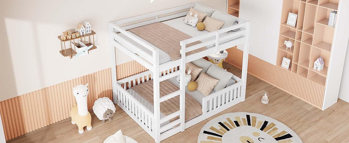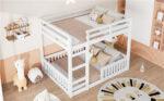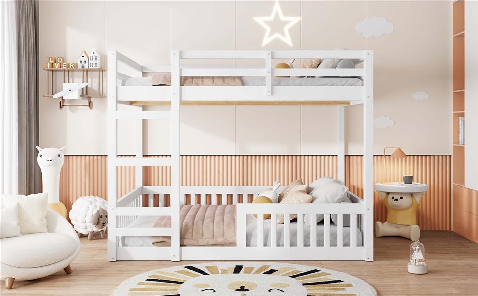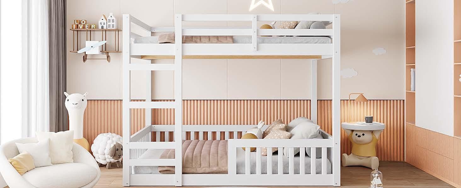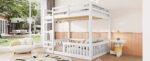 Full over Full Wood Bunk Bed with Ladder and Guardrails, White (Expected Arrival Time: 7.3)